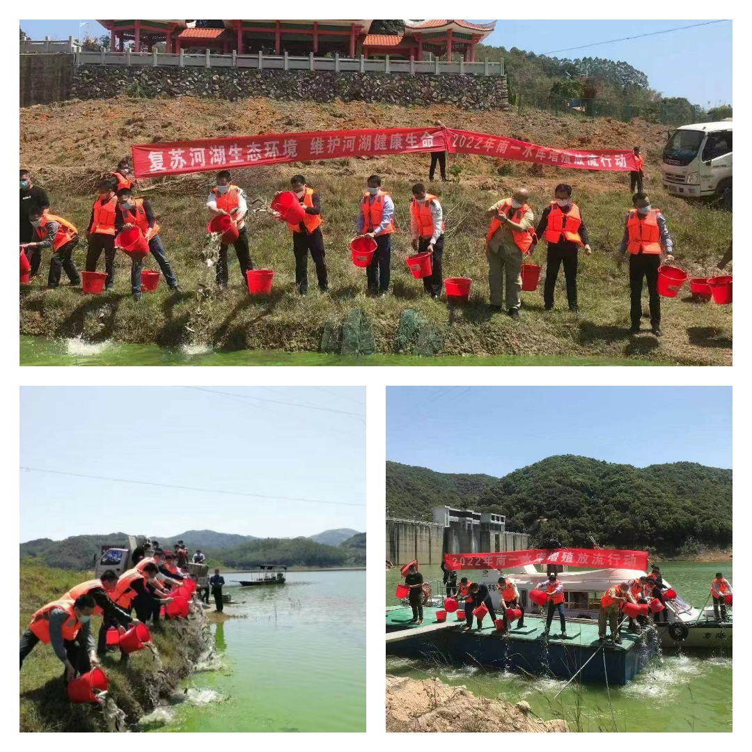 南靖新闻网4月20日讯(通讯员 王天赐)为改善辖区内河流水库水质,提高河水的自净能力,南靖县人民政府根据市、县领导以渔控藻的现场办公意见,协调奎洋镇政府、县法院、检察院、环保局、河长办、农业农村局、南一水库运行中心等部门到南一水库先后开展两次增殖放流调研活动。 活动以“增殖放流 守护南一水生态”为主题,选择南一水库坝头及店美村望湖亭为放流点,4月8日投放鱼苗20万尾,4月19日再次投放鱼苗30万尾,两次共计投放鲢鱼、鳙鱼等鱼苗50万尾,对改善南一水库水环境具有重要意义。