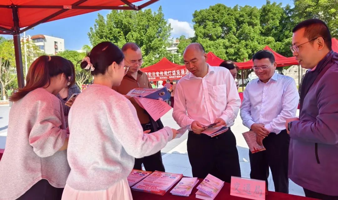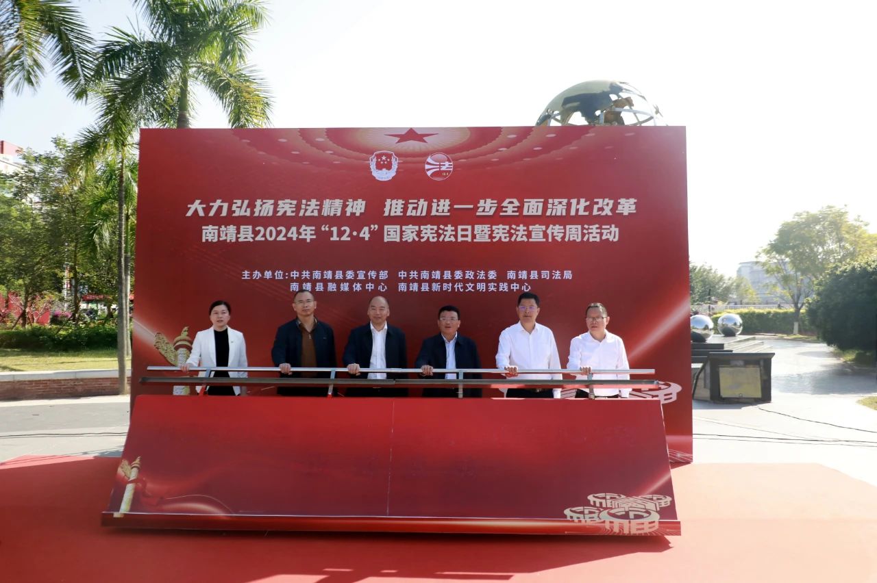 南靖新闻网12月5日讯(记者 陈雪滨 陈艺萱 庄子熙 林宜章)12⽉4⽇是第⼗⼀个国家宪法⽇。12月1日至12月7日是第七个“宪法宣传周”,今年“宪法宣传周”主题为“⼤⼒弘扬宪法精神,推动进⼀步全⾯深化改⾰”。为全⾯贯彻落实党的⼆⼗⼤和⼆⼗届⼆中、三中全会精神,深⼊学习宣传贯彻习近平法治思想,⼤⼒加强宪法宣传教育,弘扬宪法精神,维护宪法权威,推动宪法全⾯贯彻实施,12月4日上午,我县多个部门在江滨公园广场联合开展“12.4”国家宪法日暨宪法宣传周宣传系列活动。