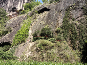 登天游峰那日,我特意了个早。六点的山间还带着露水的清凉,八百多级石阶晨雾中若隐若现。石阶很陡,有些地方需要扶着冰凉的石柱才能上行。汗水很快就浸湿了衣,但这份辛苦很值得——站在半山亭回望时,九曲溪如玉带般缠绕在丹崖之间,晨光正好穿过云层,洒下一片光。