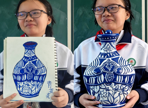 在这堂特别的美术课上,党员教师充分发挥先锋模范作用,先引导学生深入了解青花瓷的历史文化与艺术特色,激发他们的创作灵感。学生们大胆构思,精心绘制出一幅幅独具匠心的青花瓷图案。