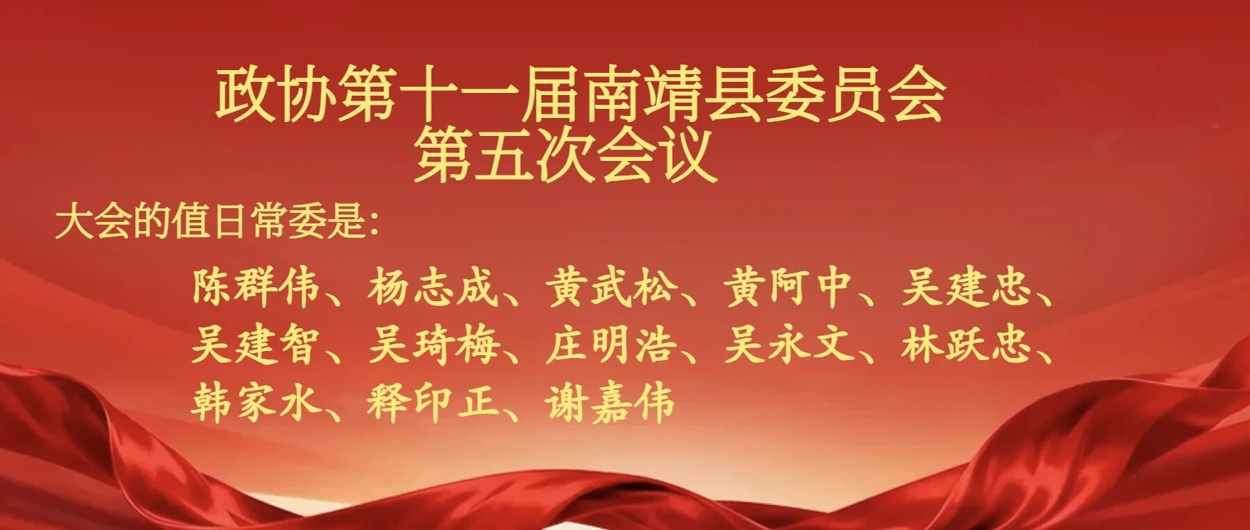 南靖新闻网12月31日讯(本中心综合)12月30日下午,政协第十一届南靖县委员会第五次会议召开第二次全体会议。县政协主席陈群伟主持会议。县政协副主席杨志成、黄武松、黄阿中、吴建忠等执行主席出席会议。