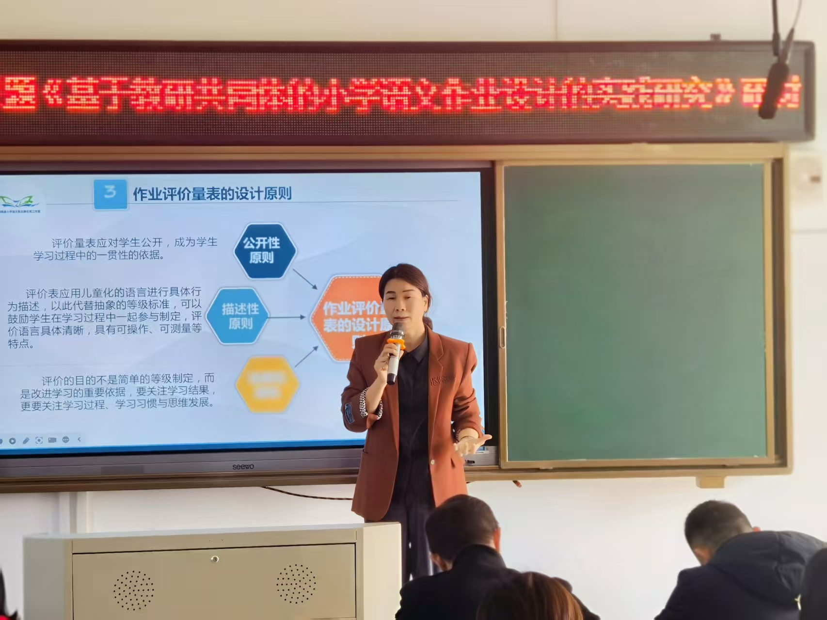 活动中,工作室成员带来两堂精彩示范课:一堂聚焦经典叙事文《西门豹治邺》,以清晰的教学逻辑、生动的互动设计引导学生感悟文本内涵;另一堂围绕低年级课文《纸船和风筝》,通过趣味活动激发学生语文学习兴趣。此外,工作室负责人以《小学语文作业评价表的设计与实施》为题开展专题讲座,结合教学实践分享作业评价优化策略,为在场教师提供实用参考。 课堂展示结束后,研讨活动在工作室负责人的主持下有序开展。授课教师详细阐述课堂设计理念与教学思路,参会教师围绕教学目标达成、课堂互动效果、作业设计优化等方面各抒己见,展开深入交流。大家在思维的碰撞中互学互鉴,凝聚教学共识,实现专业能力的共同提升。