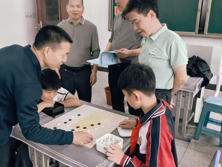 授牌仪式后,领导嘉宾实地参观学校围棋室,观摩围棋教学,与小棋手亲切交流,为校园围棋发展提出宝贵意见。