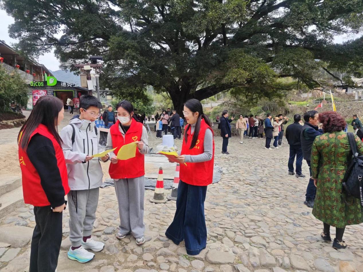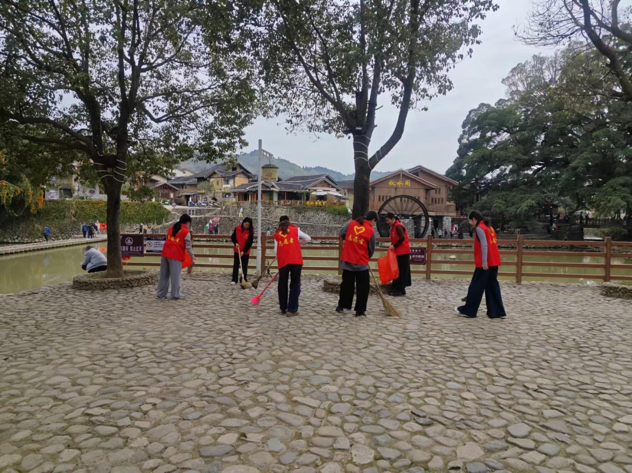 初春的云水谣景区,青山如黛,碧水潺潺。巾帼护河队员们身着统一服装,手持扫把、垃圾袋等清洁工具,沿着土楼周边的河道,仔细清理散落在河岸、草丛中的塑料袋、饮料瓶等垃圾。她们还向过往游客发放宣传资料,讲解保护水资源、防治水污染的重要性,号召大家共同参与到保护河湖生态环境的行动中来。